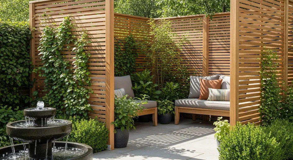 - Decorative panels or fences: Provide immediate privacy, available in wood, metal, or composite for a modern look.