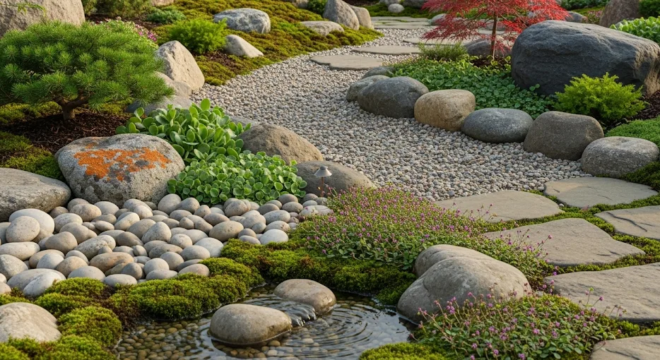 Rock gardens also provide ecological value. They attract pollinators with nectar-rich plants, while the gaps between stones offer shelter for insects, amphibians, and small mammals. In this way, they contribute to biodiversity while maintaining a distinctive, low-maintenance aesthetic.
