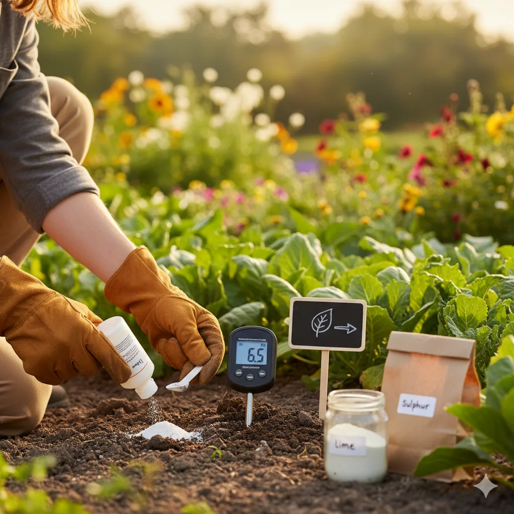 - To lower pH (make soil more acidic): Add sulphur, aluminium sulphate, or sulphur-coated fertilisers. Organic options include pine needles, composted oak leaves, or peat-free ericaceous compost.