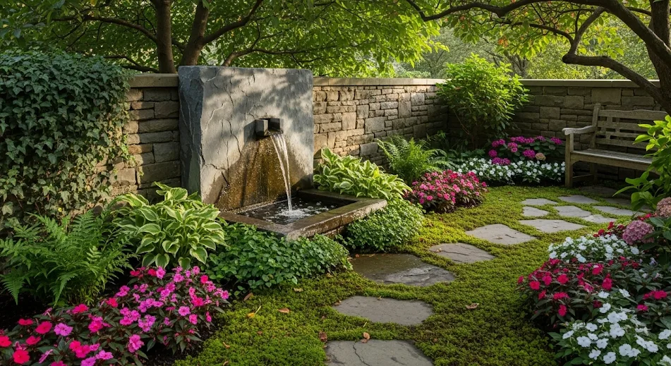- Wall fountains: Mounted against a boundary, they add the sound of water without taking up ground space.